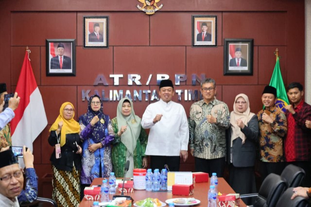 Hadir mendampingi Menteri Nusron, Kepala Kanwil BPN Provinsi Kaltim, Deni Ahmad. Turut hadir, pimpinan lembaga organisasi masyarakat Islam di Kaltim yang terdiri dari organisasi Nahdlatul Ulama, Muhammadiyah, Badan Amil Zakat Nasional, Majelis Ulama Indonesia, Dewan Masjid Indonesia, Yayasan Hidayatullah, Badan Komunikasi Majelis Taklim Masjid, Forum Kerukunan Umat Beragama, Ikatan Cendekiawan Muslim Indonesia, Kepala Kanwil Kemenag, dan Badan Wakaf Indonesia. (bp/ril)