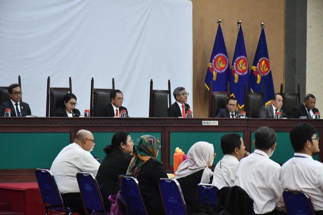 Sidang tersebut dipimpin oleh Ketua Majelis Komisi Rhido Jusmadi, dengan anggota M. Fanshurullah Asa, Mohammad Noor Rofieq, Gopprera Panggabean, Mohammad Reza, Eugenia Mardanugraha, dan Budi Joyo Santoso yang hadir secara langsung. Sementara itu, anggota majelis Aru Armando mengikuti persidangan secara daring.