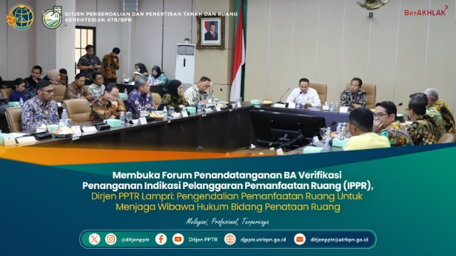 Forum yang dibuka oleh Direktur Jenderal Pengendalian dan Penertiban Tanah dan Ruang (Dirjen PPTR), Lampri, tersebut merupakan puncak rangkaian kegiatan verifikasi penanganan IPPR yang dilaksanakan untuk memastikan tidak terjadi pemutihan dalam proses revisi dan penyusunan rencana tata ruang (RTR) serta upaya Direktorat Penertiban Pemanfaatan Ruang mendorong terciptanya ekosistem pengendalian pemanfaatan ruang di daerah yang efektif.